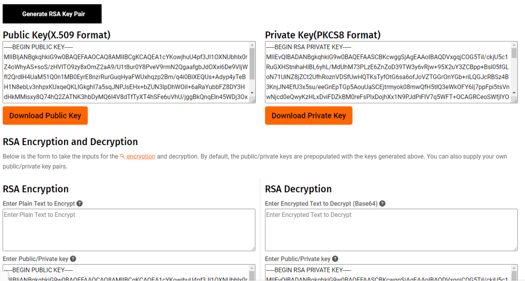 - 위 그림에서 <Generate RSA Key Pair >를 클릭하면, 공개키(Public Key)와 개인키(Private Key)가 만들어진다