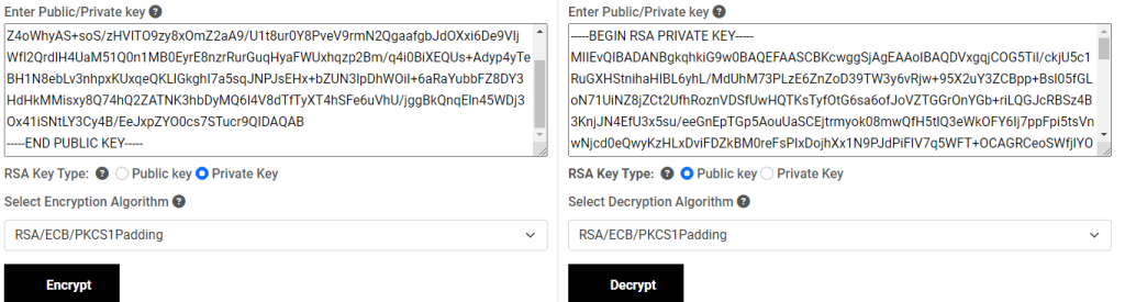 - 그것을 복사해서 우측 <RSA Decryption>에 붙여넣기 한 다음