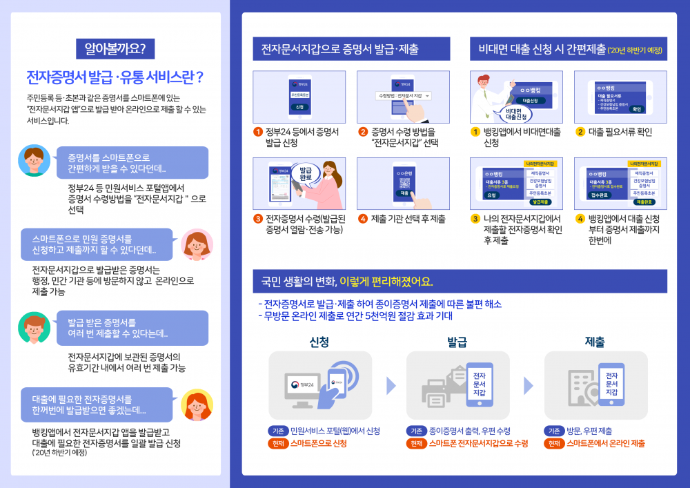 - 관공서 은행 등 해당 기관에 스마트폰 앱으로 전자증명서 제출 가능